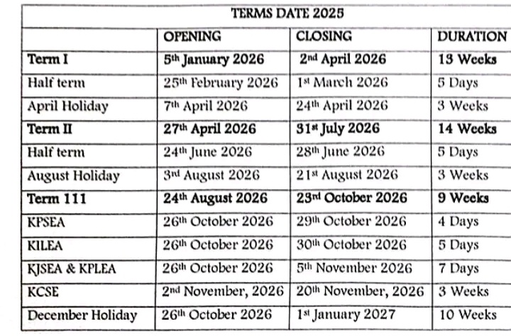 Official Kenya School Term Dates 2026 Released: Full Ministry of Education Calendar for All Schools